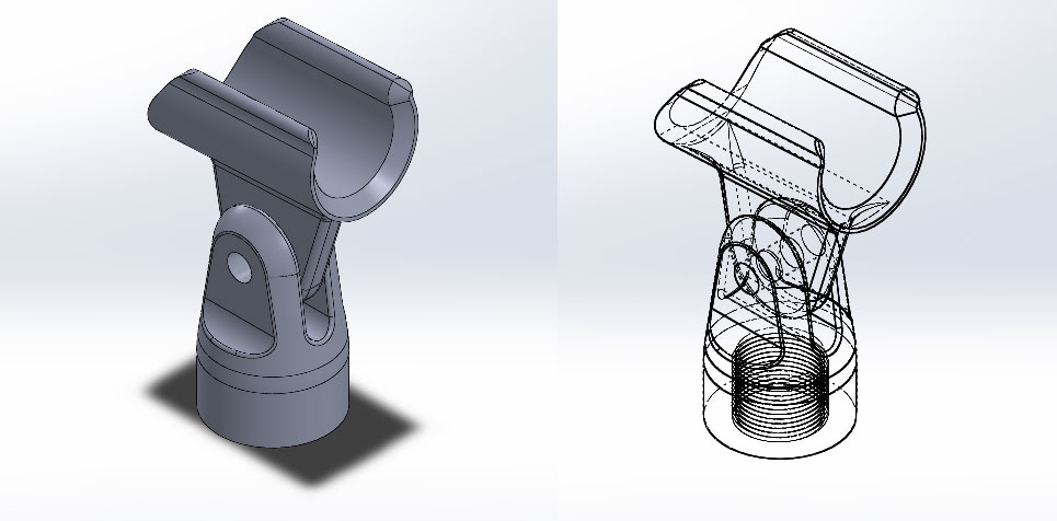 screenshots of CAD software model of the microphone clip